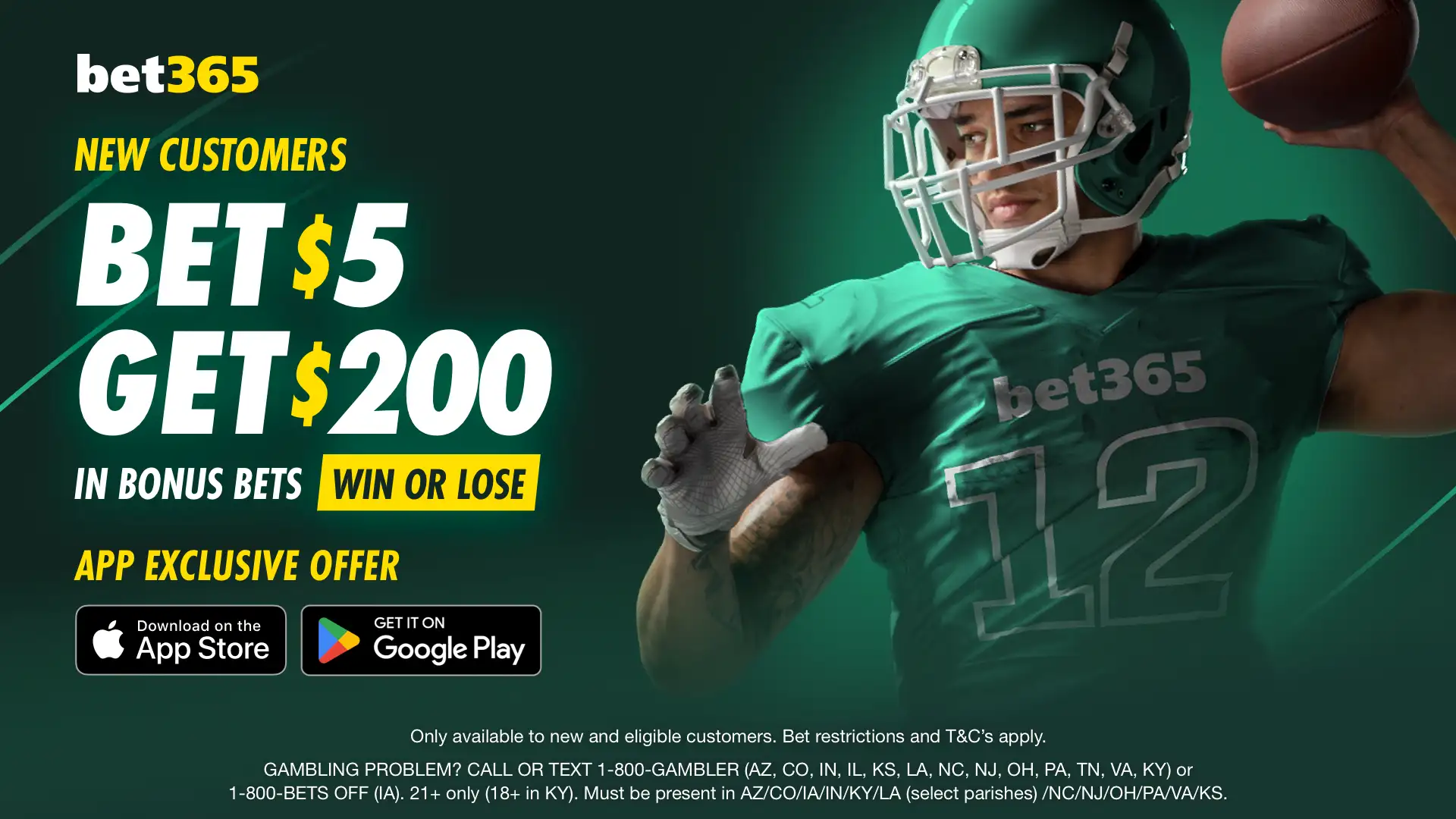 New customers only. Must be present in AZ/CO/IA/IL/IN/KS/KY/LA (select parishes)/MD/NC/NJ/OH/PA/TN/VA. Must claim offer within 30 days following registration. Deposit $10+ and place $5+ qualifying bet (odds of -500 or greater). Bonus bets are non-withdrawable and the Bonus Bets wager excluded from returns. Bonus Bets expire after 7 days. T&CS, time limits and exclusions apply – see at bet365.com.